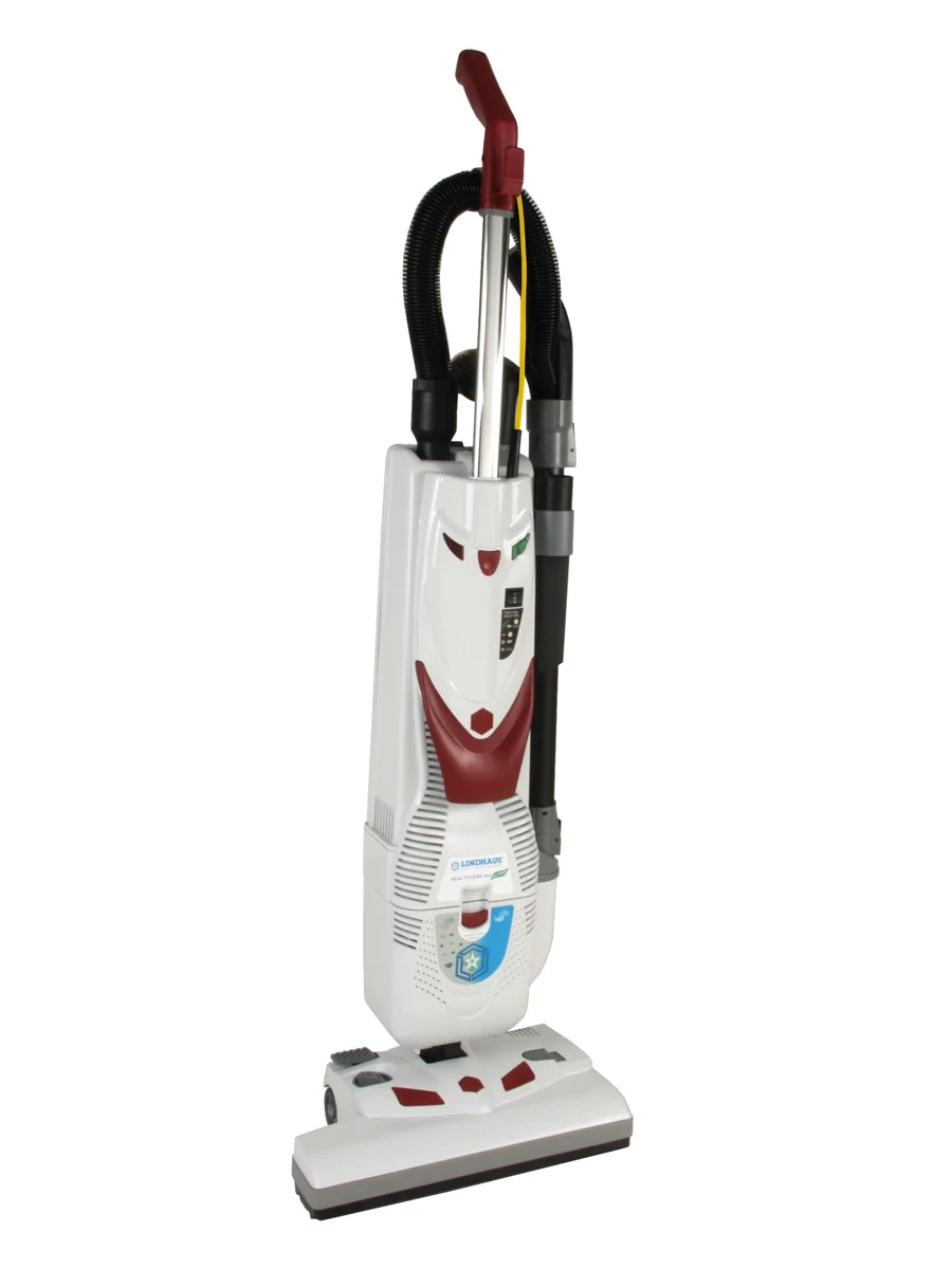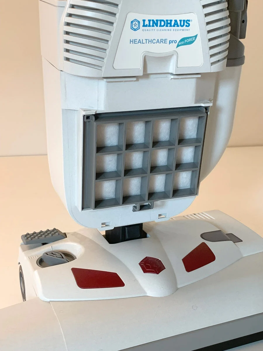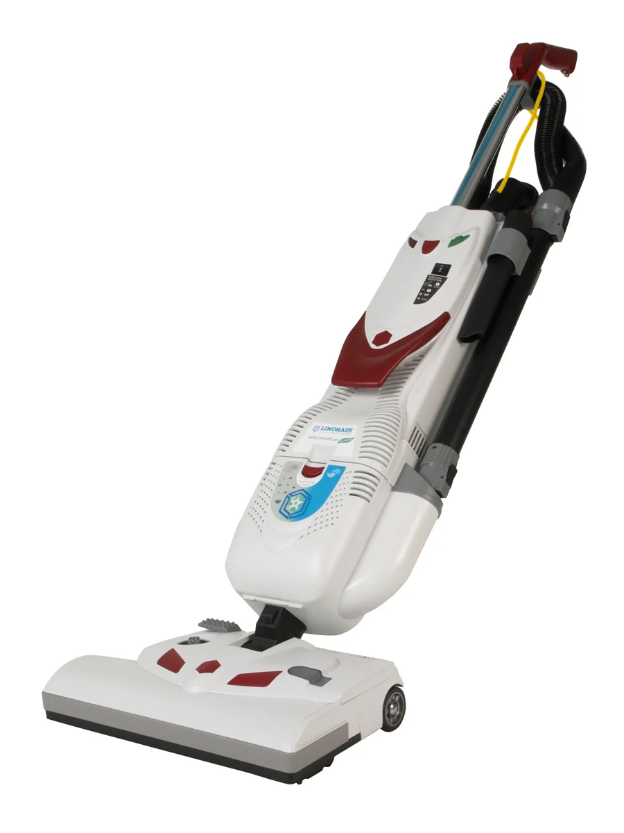 Leistungsstark, leise und superleicht zu handhaben; die patentierte Lindhaus M29R Universalbürste ist erhältlich (optional). Die Absaugung ist mit 360° perfekt, und die in der Mitte angebrachten Borsten sind selbstreinigend. Für empfindliche Böden ist auch eine Unterlage aus Naturfilz (optional) erhältlich, die an der Bürste selbst befestigt werden kann. Das Gerät kann in einer aufrechten Position arretiert werden und steht von alleine, was die Benutzung noch praktischer macht.