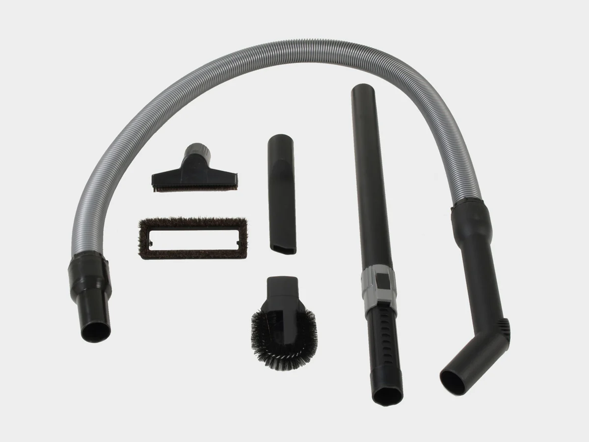 Das Zubehörset 'De Lux' umfasst: Polsterwerkzeug, rotierende runde Staubbürste, Bürste für Teleskop-Fugendüse, Gebläse.