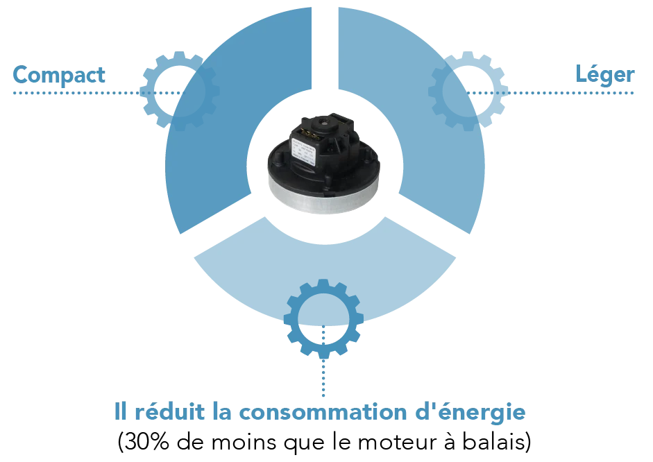 Nous avons réussi à réduire la consommation d’environ 50% pour les mêmes performances par rapport à l’excellent moteur brushless Rotafil qui équipe notre machine à sac à dos LB4 L-ion.