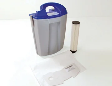 Il contenitore sacco filtro è dotato di una comoda impugnatura per facilitare trasporto e pulizia. Un grande sacco filtro in microfibra monouso da 16 litri ed un filtro protezione motore lavabile sono standard.