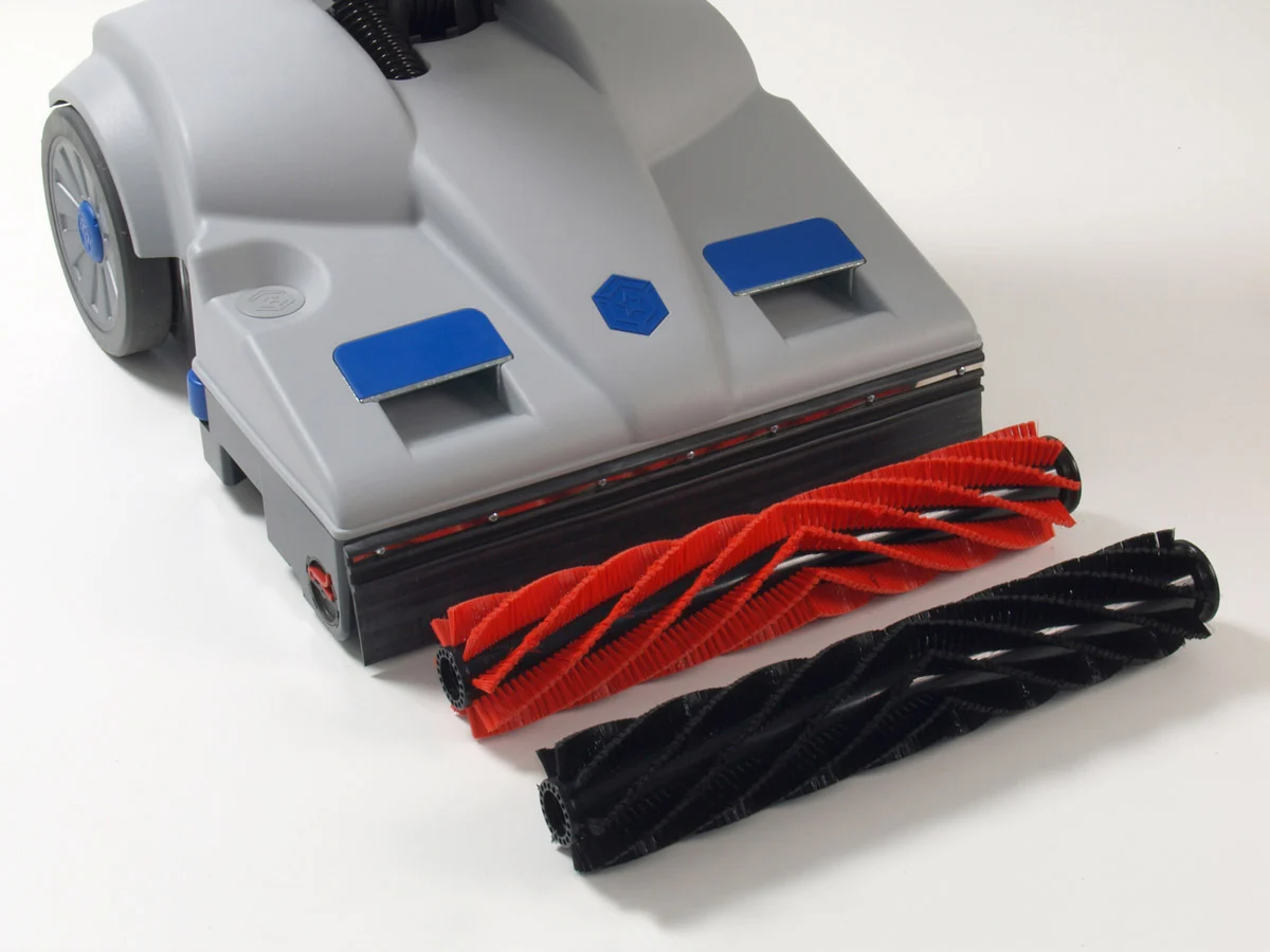 Sono disponibili due diversi rulli, uno più morbido nero ideale per la maggior parte dei pavimenti in moquette, compresi quelli più delicati (seta e lana) e uno più duro rosso per i pavimenti commerciali in tessuto sintetico a pelo basso, dove lo sporco e la terra vengono pressati nella moquette a causa del traffico intenso.