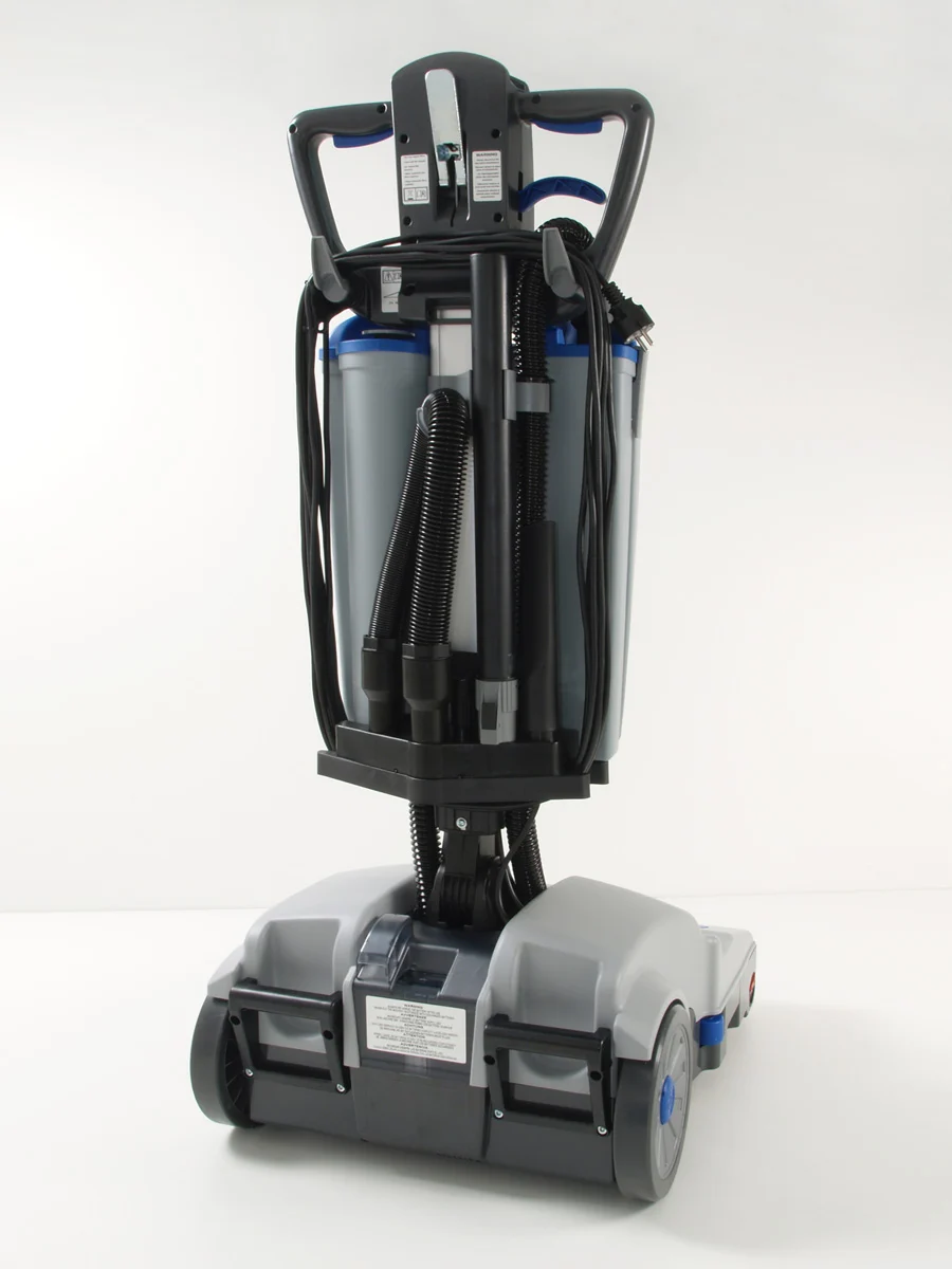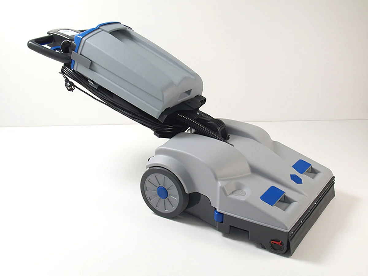 Lo snodo consente un’ampia rotazione del timone per lavorare agevolmente sotto i tavoli. Facile da trasportare grazie al telaio ripiegabile e alla maneggevolezza sorprendente. Ideale per centri sportivi, scuole, aree espositive e strutture ricettive.