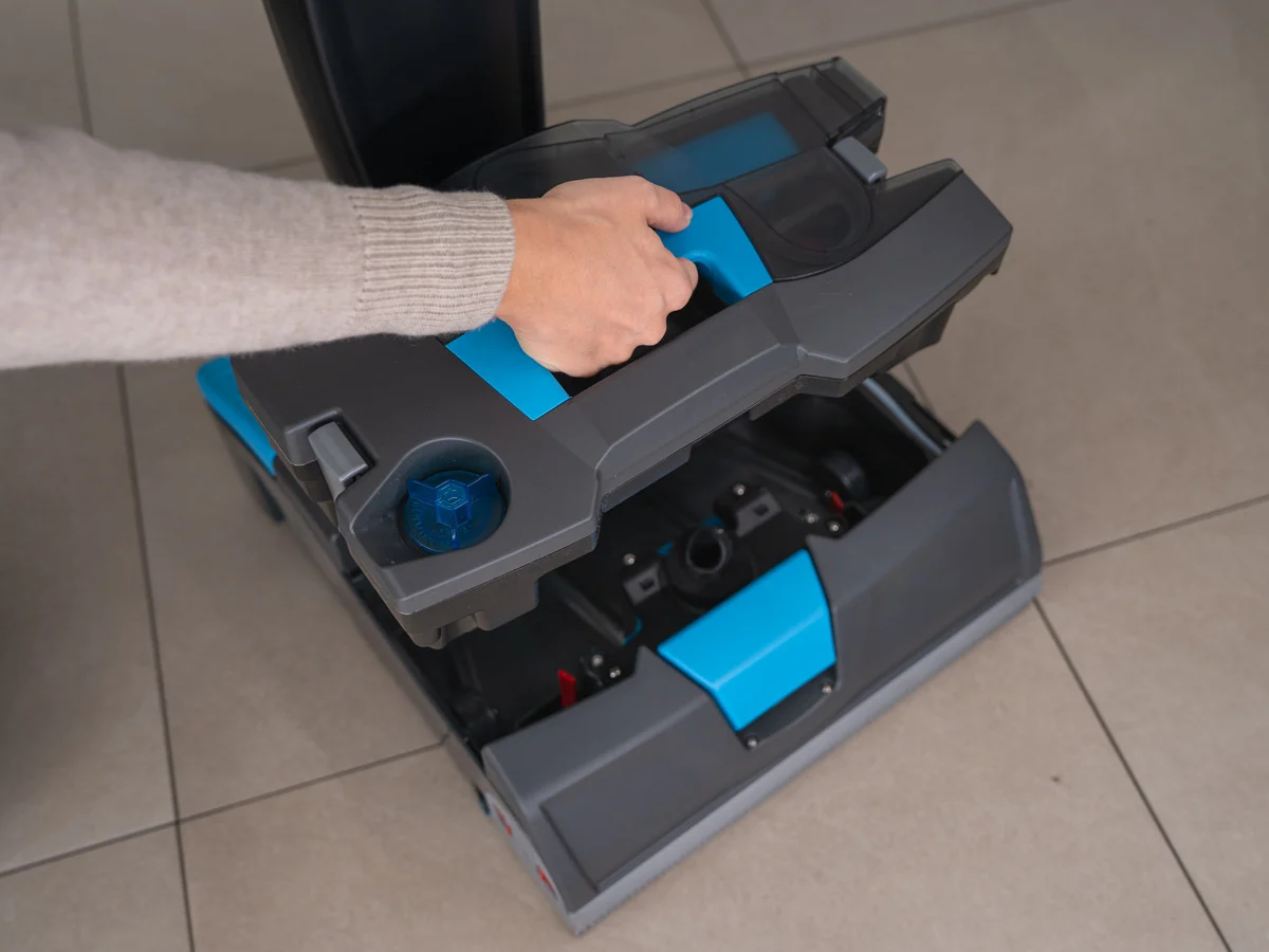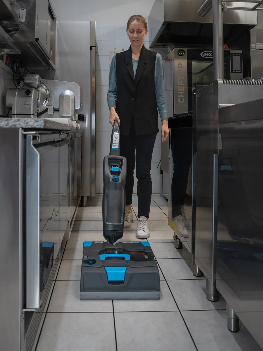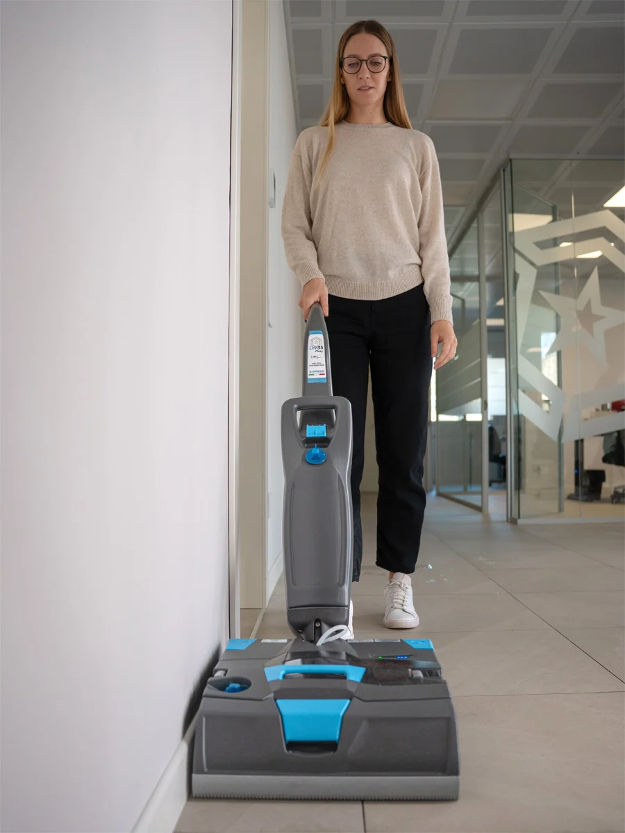 Con la base di solo 15 cm, un'autonomia fino a 45 minuti e peso sull’impugnatura di appena 960 g, è la macchina perfetta per lavare uffici, ristoranti, palestre, ambulatori.