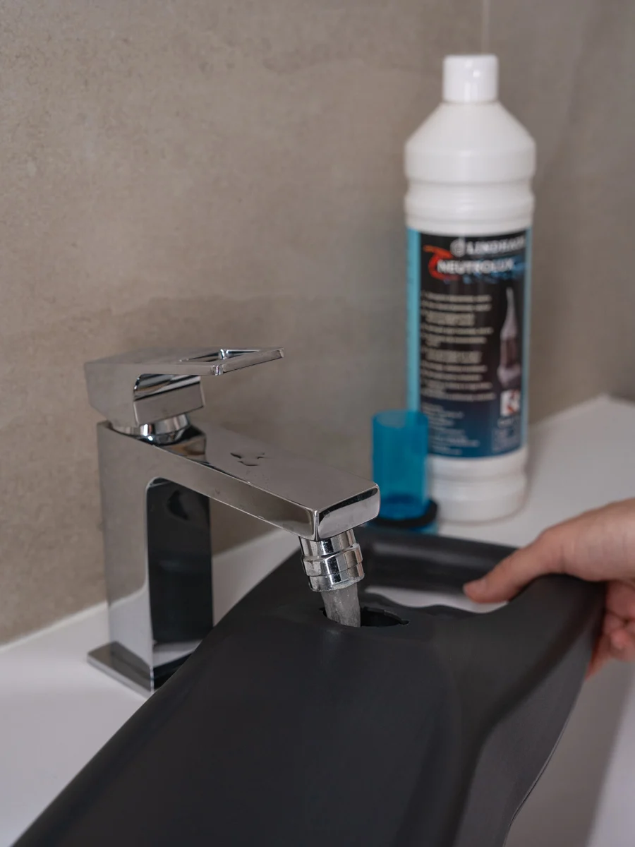 La base ultra-bassa (150 mm) e il consumo d’acqua ridotto la rendono perfetta per ambienti dove rapidità, silenziosità e igiene sono fondamentali.