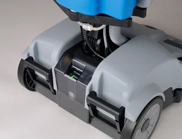 Lavora a batteria o a corrente con 15mt di cavo a bordo macchina. Nonostante la dimensione – 10lt di serbatoio e 46cm di pista di lavoro, la macchina è leggera e maneggevole, progettata per lavare grandi superfici di pavimento duro e tappeti da 200 a 2000mq.