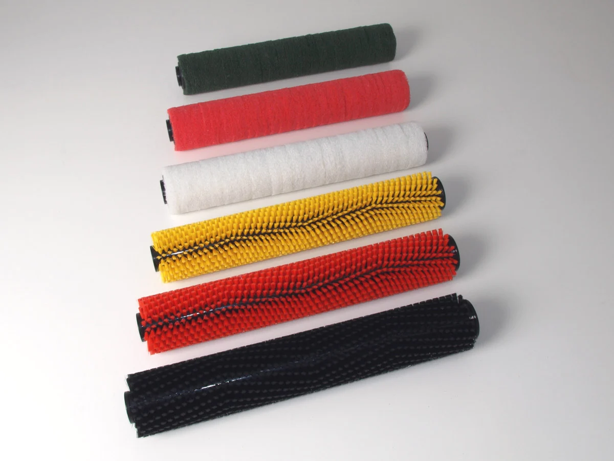 La macchina viene fornita di una bocchetta aspirante rigida e un rullo morbido nero per il lavaggio dei tappeti, e un kit squeegee gommato e un rullo setolato rosso medio per il lavaggio di pavimenti duri.