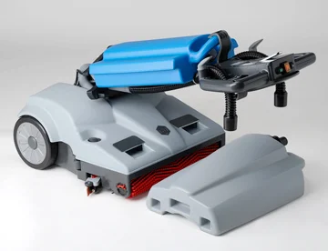 La macchina è leggera e maneggevole, è sufficiente guidarla, va da sola! Con i suoi 10lt di serbatoio e 46cm di pista di lavoro, è progettata per lavare grandi superfici di pavimento duro da 200 a 2000mq.