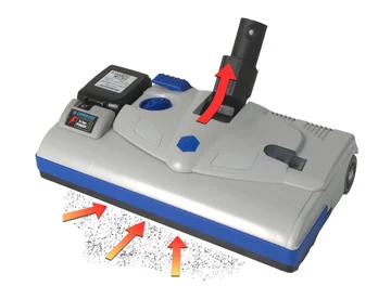 La robusta ed efficiente elettrospazzola riesce ad aspirare tutto ciò che gli altri lasciano indietro. Non richiede manutenzione alla cinghia dentata, motore ed elettronica. Grazie alle ruote gommate ed al microinterruttore che spegne il motore in posizione di blocco verticale, il trasporto da tappeti a superfici dure si effettua senza perdite di tempo e senza l'innalzamento di polvere.
