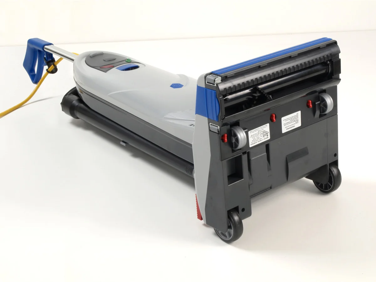 This uniquely designed world class, single motor vacuum is light weight, and has two geared belts protected by a patented clutch system and an electronic overload control.